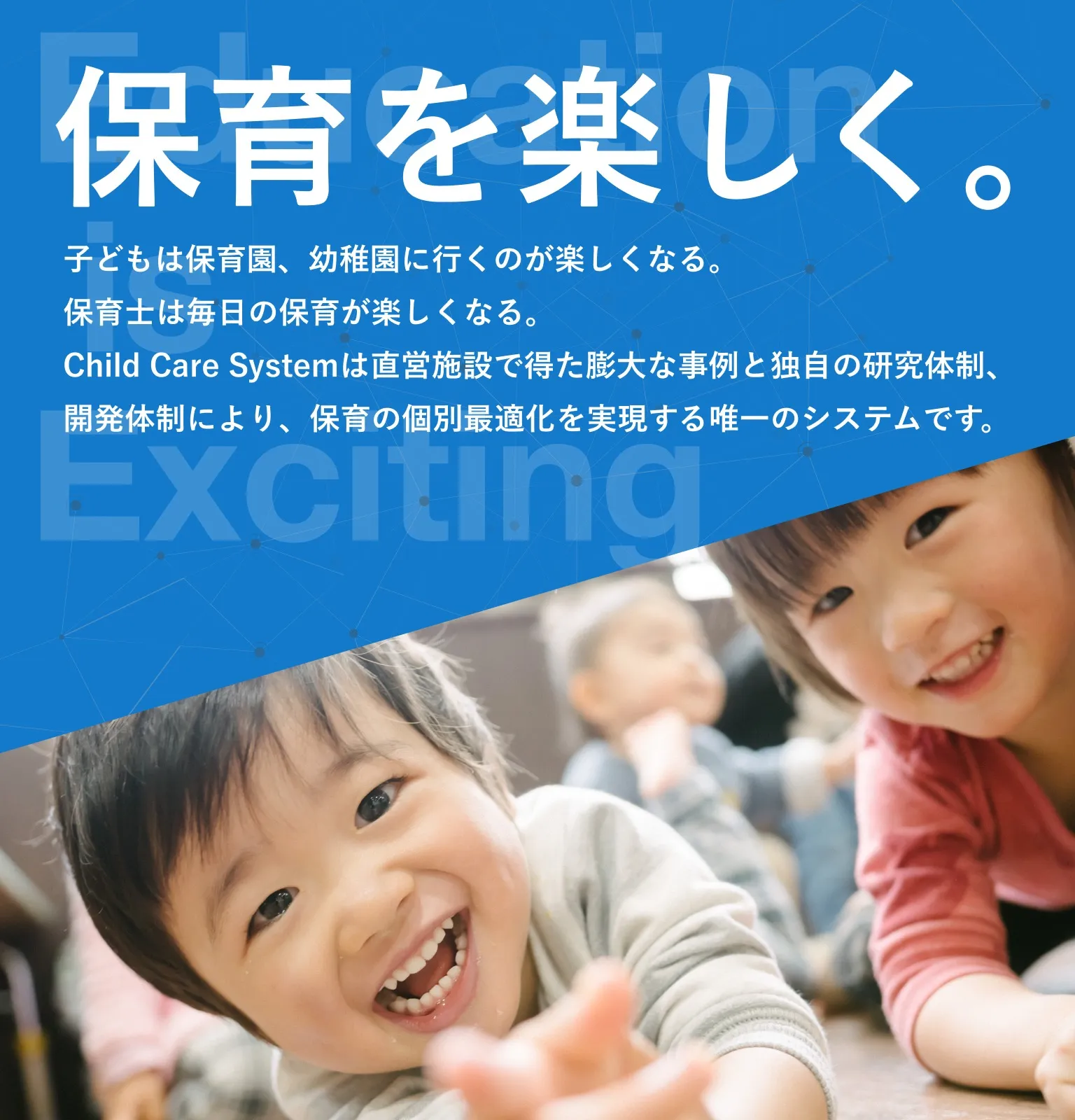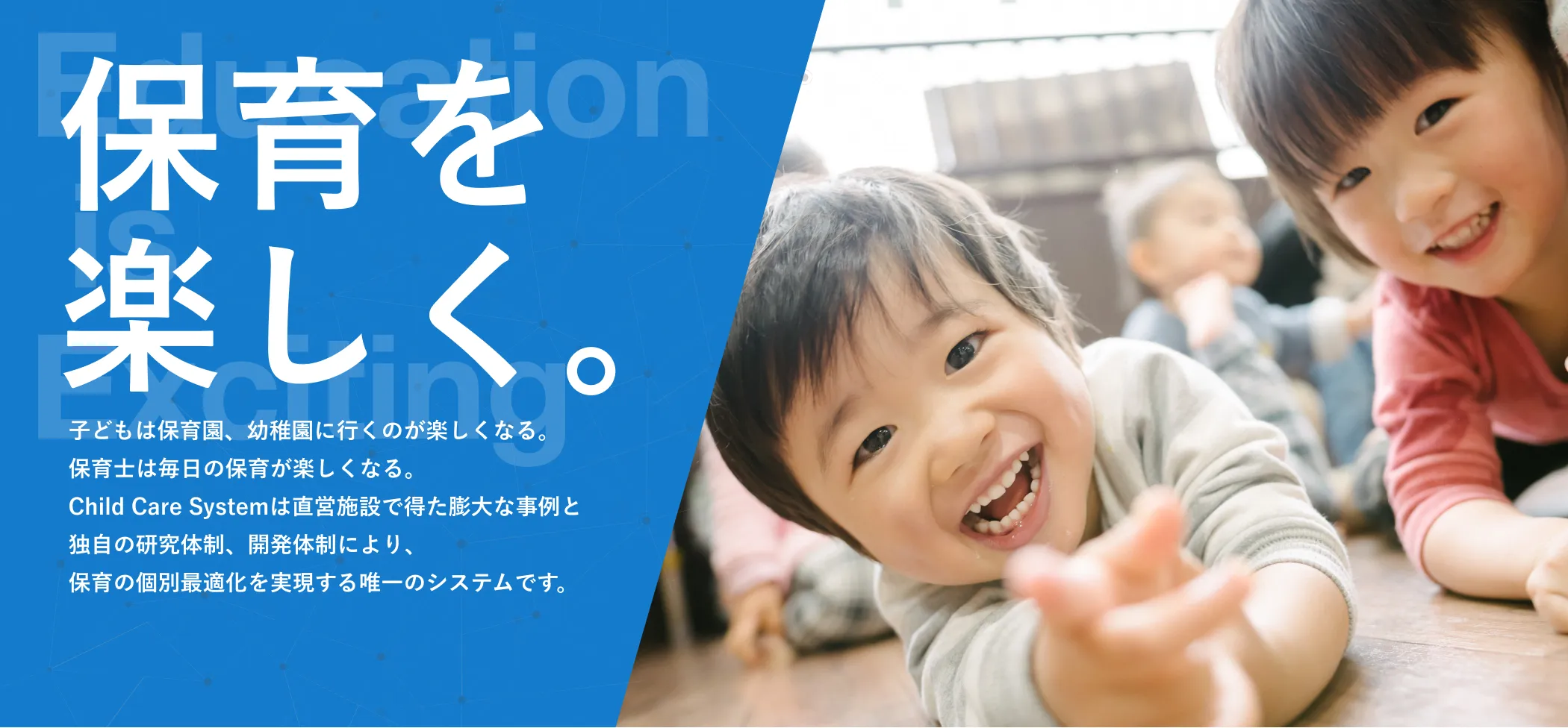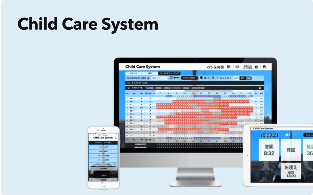 保育業務のICT化で、園児一人ひとりと向き合う時間を増やすシステムです。