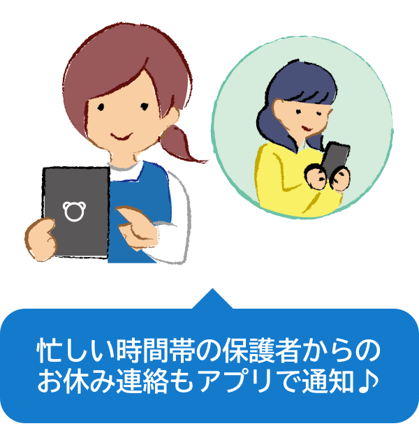 保護者版、保育士版と分かれており、Child Care Systemと連携して迅速に情報を共有できます。保育士同士が園内の情報を把握でき、伝え漏れを防ぎます。