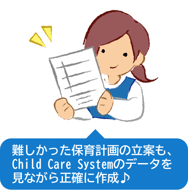 業務効率化によって日々入力された大量の子ど ものデータを集計し、個別最適化 された保育計画の作成をサポートします。