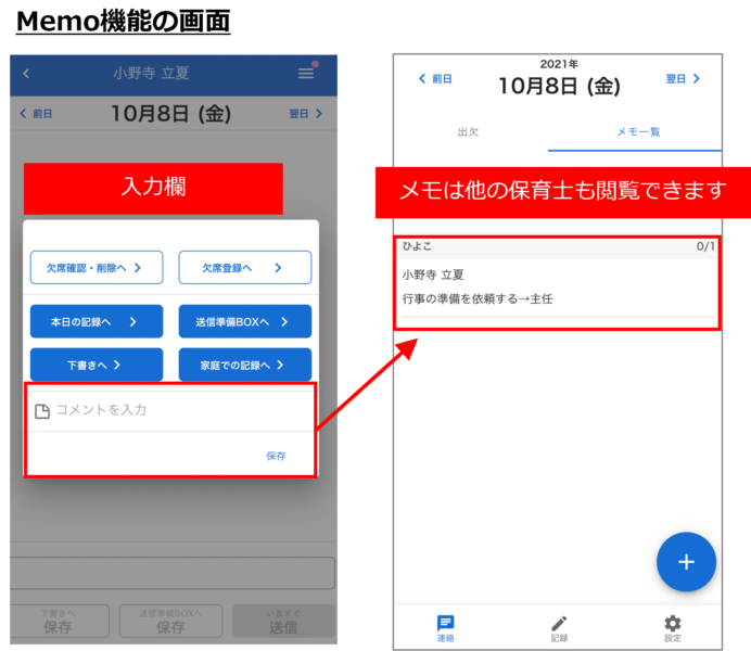 また、アプリのメモ機能を活用して、早番の職員が遅番の職員に伝えるべきことを入力することで情報共有もしやすくなります。こういった環境を整えていくことも、クレーム再発防止に繋がります。